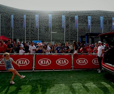 Como socio de la FIFA y socio oficial del automóvil, Kia Motors suministra vehículos oficiales para los eventos FIFA y propio FIFA en una amplia gama de modelos, y promueve el conocimiento de la marca a través de diversas actividades de marketing y publicidad en vallas publicitarias en la arena.
